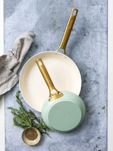 De pan van GreenPan is duurzaam geproduceerd en heeft een sterke keramische antiaanbaklaag, zo gaat de pan langer mee.