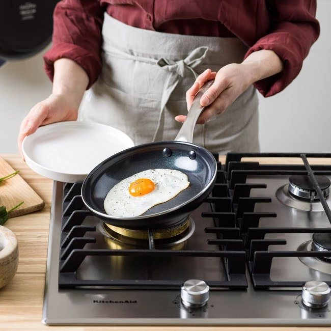 – De koekenpan komt in verschillende maten.