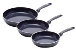 Met de GreenPan Torino Koekenpannenset 3-delig haal jij een goede set pannen in huis. Je gebruikt de pan van 20 cm voor het bakken van een ei. De koekenpan van 24 centimeter gebruik je voor het bakken van een stukje vlees en in die van 28 centimeter bak je tegelijkertijd de aardappeltjes krokant. De PFAS-vrije keramische baklaag is duurzaam en gemaakt zonder schadelijke stoffen. Dankzij deze antiaanbaklaag bak je met weinig boter of olie en bereid je extra gezonde gerechten. De pan is geschikt voor alle warmtebronnen en mag na gebruik gewoon in de vaatwasmachine. Naar de afwas heb je dus geen omkijken.